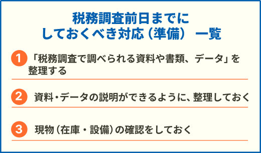 <税務調査前日までにしておくべき対応(準備)一覧>